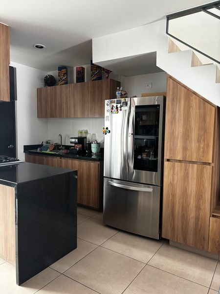 Cocina equipada con estufa y microondas empotrado