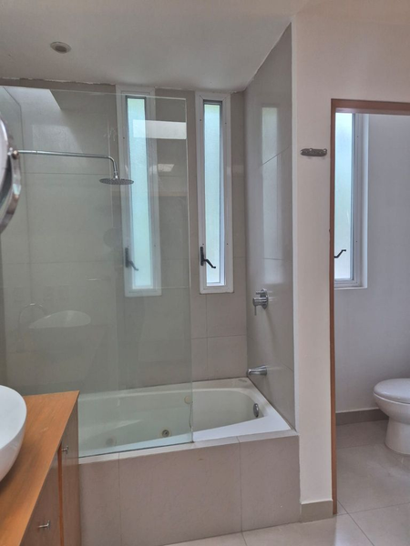 EN PLANTA BAJA AMPLIO ESTUDIO, MEDIO BAÑO, COCINA INTEGRAL, AREA DE LAVADO CON CUARTO DE SERVICIO CON BAÑO. SALA Y COMEDOR CON VISTA A LA TERRAZA.