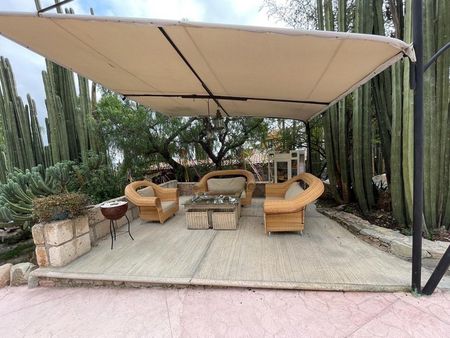Completamente equipada con cisternas, paneles solares, 6 habitaciones 2 de ellas muy amplias, cada una con su baño privado, sala de usos múltiples con baños y chimenea, área de comedor con cocina, sala exterior, alberca con baños completos exteriores, amplios jardines con zonas de recreación ( temazcal y zona de fogata ) loft para el encargado, bodega, centro de lavado y amplio estacionamiento.