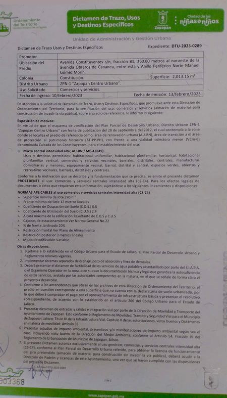 CUENTA CON DIVERSOS USOS DE SUELO, RESIDENCIAL, COMERCIAL, INDUSTRIAL