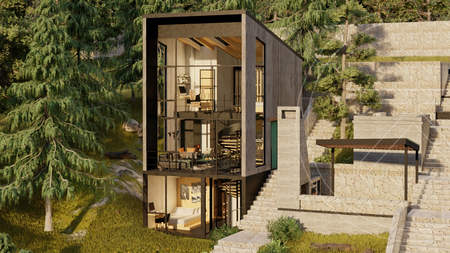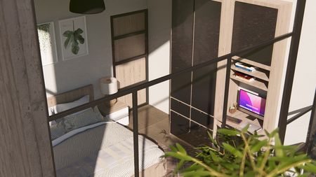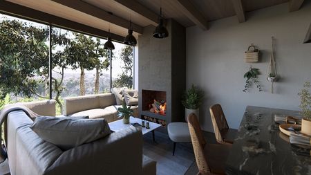 La planta alta presenta una recámara principal con baño completo y un espacio de doble altura con impresionantes vistas arboladas.