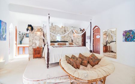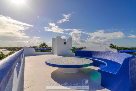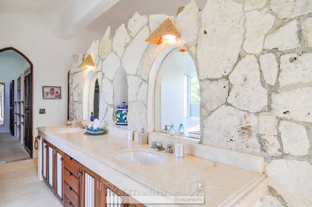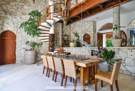 Esta es la única villa frente al mar en la famosa bahía de Akumal, conocida por su grande población de tortugas marinas. Construida con una influencia árabe, esta villa de más de 1,000 m2 de construcción en un terreno frente al mar de 1,600 m2 cuenta con 6 habitaciones, 6.5 baños espacios muy amplios, alberca privada, jardines privados que dan hacia la playa en la bahía de Akumal, y una de las mejores vistas en todo el pueblo desde la terraza en el techo.