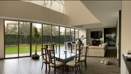 3 recamara todas con baño completo, la recamara principal cuanta con vestidor, family room, baño de visitas, sala comedora, cocina integral con barra, cuarto de lavado, cuarto de servicio con baño completo, 4 estacionamientos, 250m habitables, 150m de jardín, muy buena iluminación