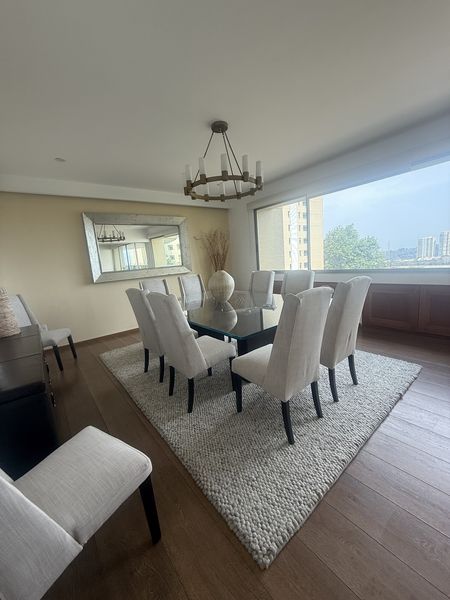 Sala/ Comedor súper iluminado con ventanales de piso a techo