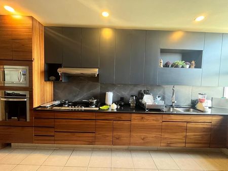 El departamento cuenta con muy buena distribución en maravillosos 246m2, 3 recamaras, amplia sala comedor, cocina amplia con iluminación y ventilación natural, recamaras de excelente tamaño, las recamaras secundarias con closet y la principal con Vestidor, 2 lugares de estacionamiento y bodega.