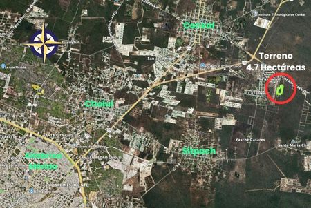 Descubre esta oportunidad única para inversionistas con visión de futuro. Este terreno de 4.77 hectáreas (47,662 m²) se encuentra estratégicamente ubicado en Yaxkukul, Yucatán, al norte de Mérida, a solo 20 minutos del periférico de la ciudad y conectado por la moderna autopista a Motul.