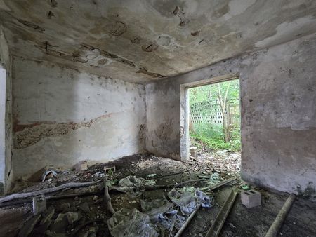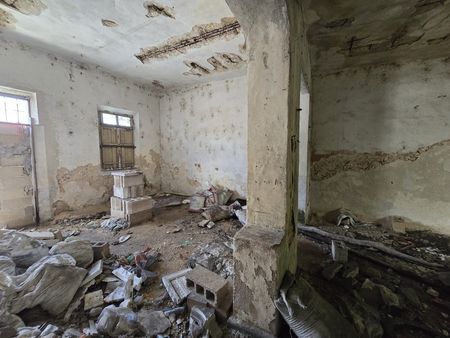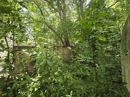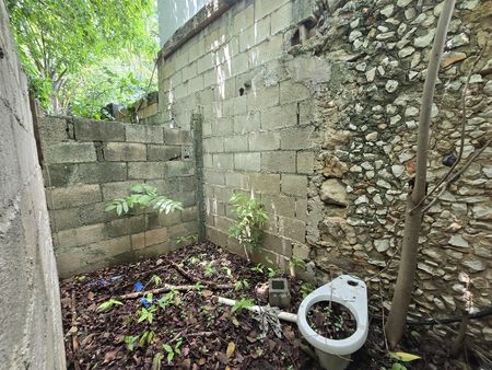 Fachada y construcción 45 m2 que se compone de 2 crujías de mampostería y amplio terreno con arboles grandes.