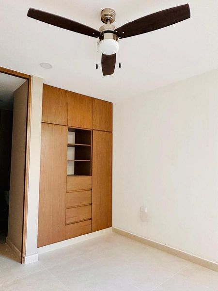 2 recámaras, 1 baños completo y 1 medio baño para visitas, además de una amplia terraza en el área social. Se entrega con carpintería de madera de encino, en cocina, baños y closets, lámparas decorativas en sala y baños, espejos y cristal templado en baños.