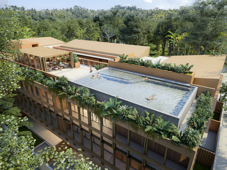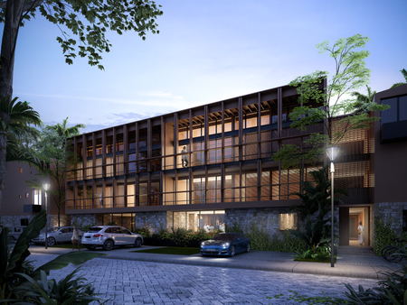 Un proyecto con un total de 28 departamentos de estilo contemporáneo, sobrio e innovador que dado a su localización dentro de la jungla natural y su cercanía a la playa se decide el crear un diseño en armonía con su contexto.
