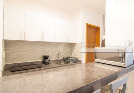 Ideal para solteros o parejas, este estudio lleno de luz solar es perfecto para rentas vacacionales o como su propio refugio caribeño. Cuenta con una cocina con barra de desayuno, microondas y cocina eléctrica. Este estudio tiene una zona de estar con un futón y una zona de descanso con una cama king-size, dos mesitas de noche incorporadas y un armario con puertas con espejo. Se abre a un balcón privado con vistas a la calle. Este condominio tiene pisos de cerámica y acabados de alta calidad que son duraderos y fáciles de mantener. Se ofrece amueblado y equipado con ventiladores de techo y aire acondicionado.