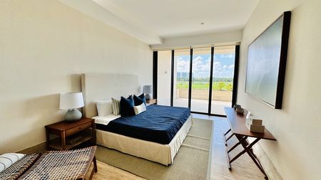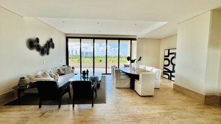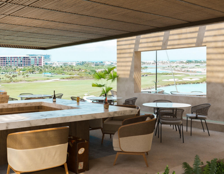 Con amenidades como tres albercas, restaurante, marina, gimnasio, spa, cancha de pádel, business room, kids club, zona de asadores, jardines, seguridad 24/7