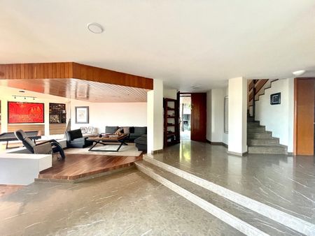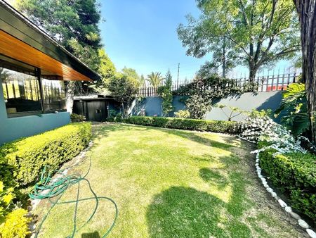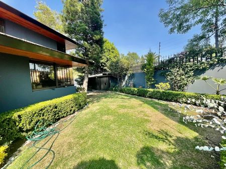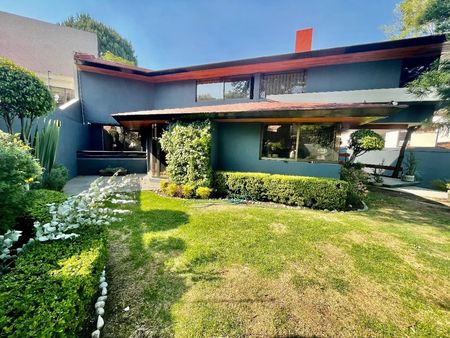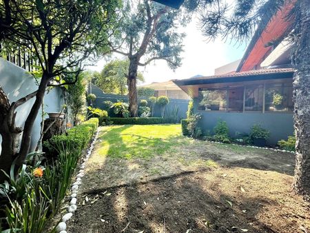 Espectacular casa de 500 m2 de superficie y 630 m2 de construcción, 3 recamaras cada una con baño completo y dos con walking closet, amplia estancia principal con dos salas, terraza, comedor, gran cocina integral con salida a terraza y jardín privado de 100 m2 aproximadamente, family room con terraza, gimnasio, estudio, cuarto de servicio con baño completo , cuarto de choferes, cuarto de instalaciones eléctricas e hidráulicas, bodega y estacionamiento para 9 coches (6 techados). La casa se rentaba por una embajada por lo que cuenta con todas las instalaciones de seguridad como cámaras y cerraduras especiales.