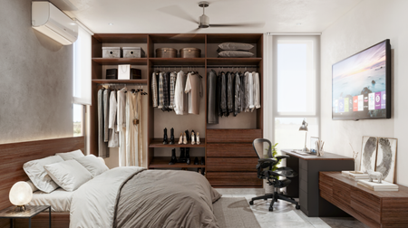 Recamara principal con closet semi vestidos.