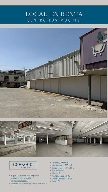 Local comercial en esquina Av. Ramirez y Av. Degollado,en el centro de Los Mochis,