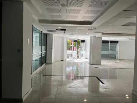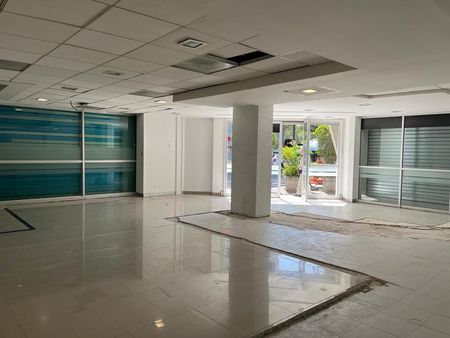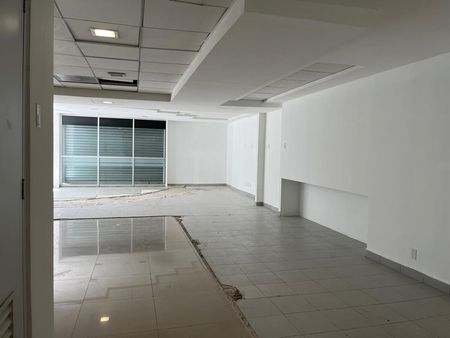 Súper local a pie de calle con la mejor ubicación!! Son 160 m2. Dos baños, cocineta área o cuarto para almacén u oficina y un cubículo de vidrio. Tiene cortina eléctrica. Muy buena Iluminación natural con aire acondicionado.