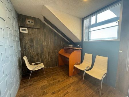 Oficina con 4 mesas de trabajo y una recepción