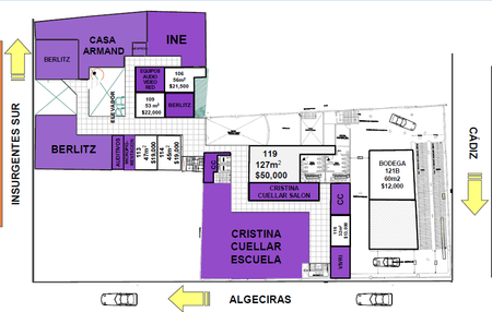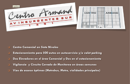 Centro Comercial de 7 niveles, estacionamiento para 500 autos y/o valet parking, elevadores, vigilancia y circuito cerrado, mantenimiento 10% sobre la renta, depósito de 2 meses, Fiador.