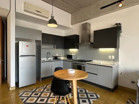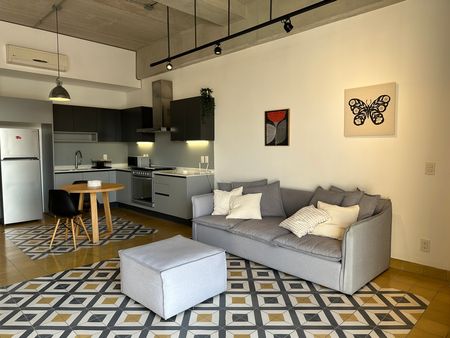 Este Loft moderno y 100% amueblado de 80 m2, terraza, 1 recámara y 1.5 baños es una excelente opción.