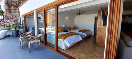 Fully remodeled contemporary spacious condo with a large terrace overlooking the bay and the city in a traditional Mexican arquitecture building that maintain the charm and warmth of Old Mexico. The living room and master open in to a large terrace with a bathtub and works great for a living open space. Located right next to the Romantic Zone in the hills of Altavista, giving you sensational views of old town and the bay. Walking distance to Zona Romantica and Los Muertos Beach and to the nice restaurant bars, cafe´s, nightclubs, markets, art galleries and theater center.