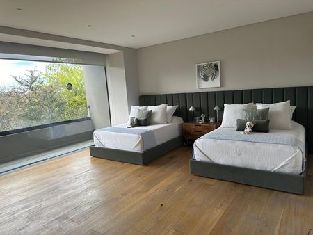 Con vistas arboladas y gran jardín esta casa nueva del Arq Jaime Guzmán
