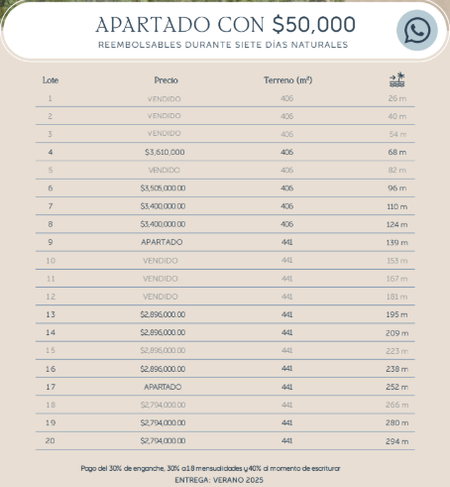 Apártalo con $50,000.00 MXN (reembolsable durante 7 días naturales)
