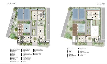 Canchas de pádel/ Estacionamiento/ Doble pórtico/ Casa club/ Senior club Sauna y jacuzzi/ Juniors club Terraza bar/ Salón de eventos/ Gimnasio y lockers con cocina y jardín / Alberca de adultos y niños/ Sala de juntas/ Canal de nado semiolímpico/ Coworking/ Salón de yoga / pilates/ Ludoteca/ Pet park.