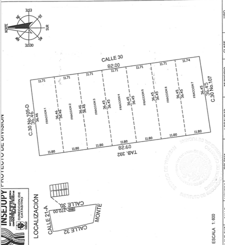 El lote mide 428 m2 (11.71 metros de frente por 35 m de fondo), cuenta con una demasía de 90 metros. O sea se entrega la posesión de 520 m2 aproximadamente.
