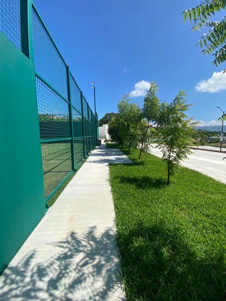 - EQUIPAMIENTO URBANO.- Pórtico de acceso, avenidas y banquetas de concreto, barda perimetral, instalaciones subterráneas, luminarias de led y planta de tratamiento de aguas residuales, áreas verdes