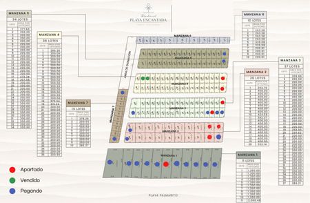 Manzana 1 lotes de playa : 8,000 Pesos / m2