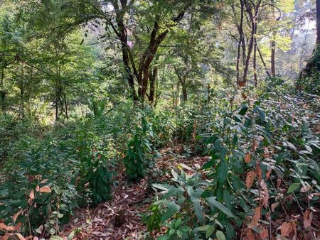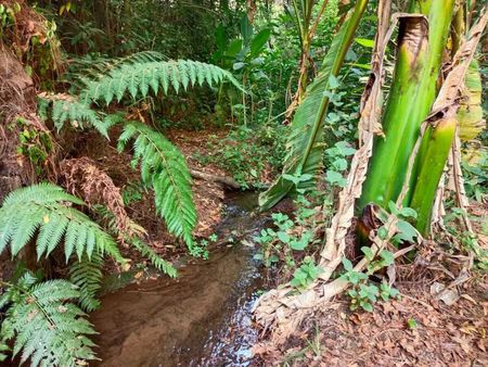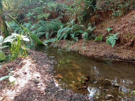 Es un terreno grande que colinda con el rio, Unas partes tienen pendiente y otras son más planas, sobre todo las que colindan con el río. A pesar de sus árboles grandes, hay bastantes entradas de luz y espacios para construir la casa de tus sueños.