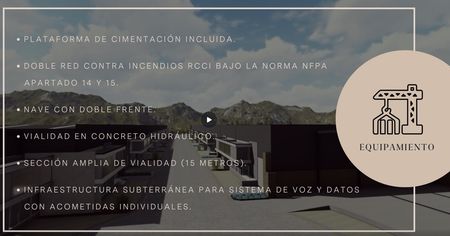 *Plataforma de cimentación incluida. Lotes listos para solo desplantar la nave sin necesidad de excavación.