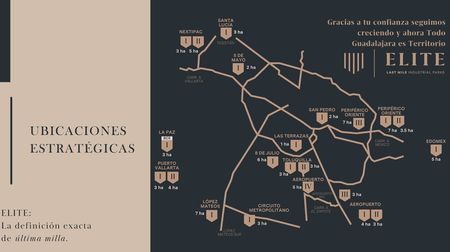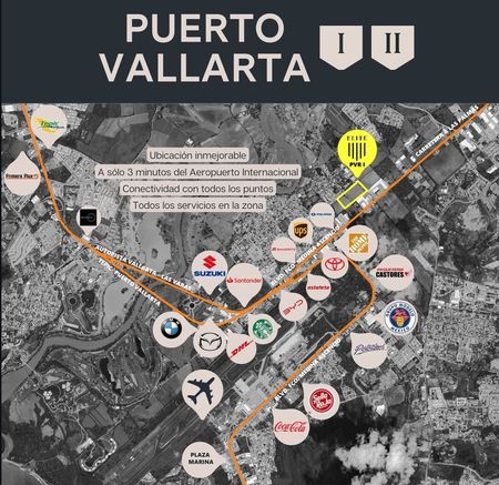 Lotes industriales en Pre-Venta para la construcción de bodegas, dentro de un Parque Industrial de última generación. ELITE, LAST MILE INDUSTRIAL PARKS. El cual se encuentra en una ubicación estratégica, a tan solo 3 minutos del aeropuerto internacional, punto medio entre Bahía de Banderas y PUERTO VALLARTA. Conectividad con todos los puntos de la ciudad y todos los servicios de la Zona. Como punto de referencia estamos ubicados a pocos metros de HOME DEPOT, sobre carretera a las palmas.