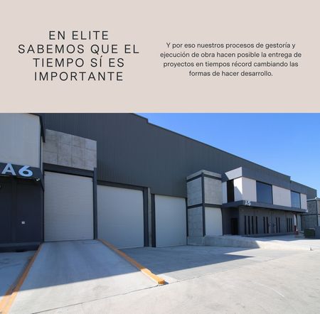 ELITE es una cadena de parques industriales en donde la seguridad, el equipamiento y los servicios, conviven de forma única en las mejores ubicaciones. Con mas de 20 parques industriales operando en la actualidad. Ya sea que lo quieras para colocar tu negocio o para inversión, ELITE es la mejor opción en parques industriales. Si lo quieres para inversión, nosotros te apoyamos a conseguir un cliente 100% calificado para renta. Tenemos la opción de entregarte la bodega terminada y lista para ingresar.