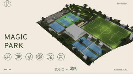 Rosío, un proyecto exclusivo en Cabo Norte que ofrece 55 lotes desde 375 m2 hasta 750 m2. Disfruta de un parque central de más de 4,600 m2 con vistas y acceso directo a lagos y su impresionante anfiteatro. Además, Rosío se encuentra junto al Magic Park, brindándote una ubicación privilegiada.