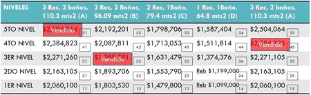 Desde 1,631, 479 para dos recamaras. Se da un 10% de descuento bajando el precio a 1,468,331 si se paga de contado en una sola exhibición.