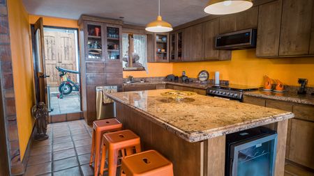 El primer piso ofrece un dormitorio versátil con cama abatible (Murphy bed), ideal como oficina, gimnasio o suite para invitados. Incluye baño completo, chimenea, encimeras de granito, lavandería y mucha luz natural.