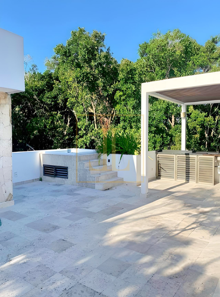 Featuring premium-quality finishes and a functional two-level layout, the property offers a spacious rooftop and beautiful views of the Mayan jungle: