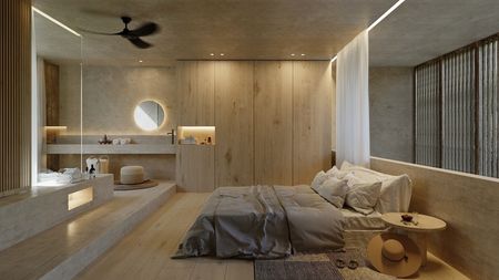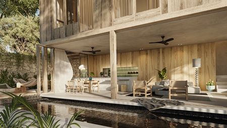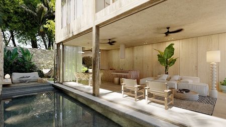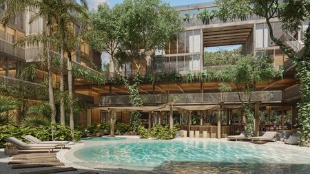 Estos nuevos departamentos de 1 y 2 recámaras, diseñados de manera sostenible, ofrecen diferentes distribuciones y opciones para satisfacer sus necesidades, incluidas opciones de separación para ocupación adicional y potencial de ingresos. Están diseñados para ser a prueba de sonido y cada unidad cuenta con su propia alberca privada. Presentan un amplio diseño de concepto abierto con una cocina completamente equipada, áreas de estar y comedor separadas, y ventanas de piso a techo que dejan entrar mucha luz natural y se abren para crear hermosos espacios de vida en interiores y exteriores. Las recámaras tienen una lujosa bañera estilo jacuzzi y una pantalla retráctil para crear un cine personal en el interior. Estos departamentos tienen materiales y acabados naturales que son duraderos y fáciles de mantener. Se ofrecen en venta sin amueblar, pero equipados con ventiladores de techo y aire acondicionado.