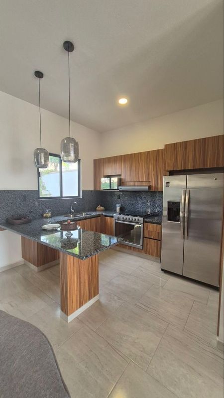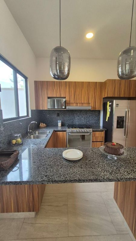 -cocina equipada con vista al jardín