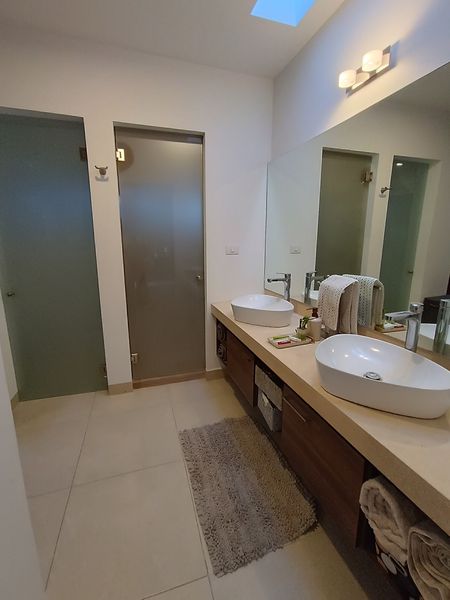 Recámara principal con amplio vestidor y baño completo con doble lavabo