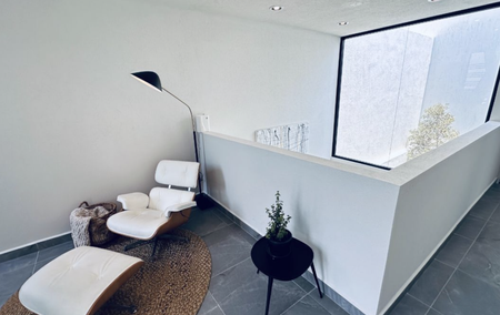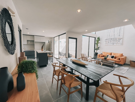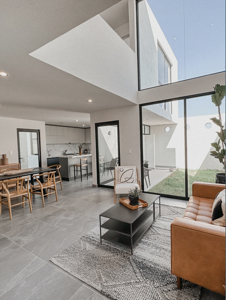 Con la doble altura que le da una sensación de amplitud, elegancia e iluminación, esta casa con espacio de sala, comedor y cocina abierta te brinda un ambiente muy acogedor.