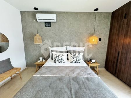 Recámara principal equipada con mini split, baño completo y vestidor.