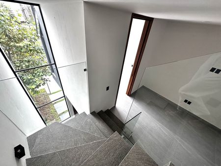 Planta baja : sala comedor, cocina integral, estudio, baño completo, jardín, cochera para dos autos.