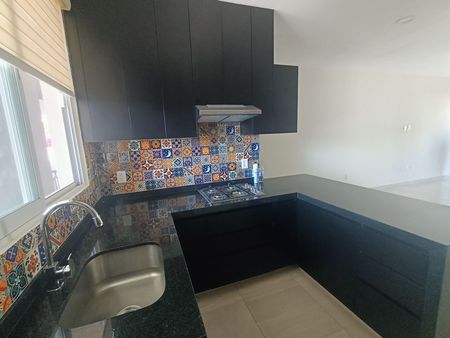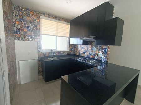 - Cocina equipada con barra de granito, alacenas, parrilla, acabado con talavera y persiana.