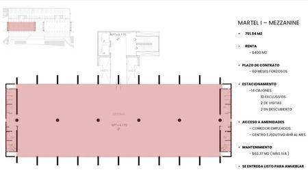 Renta de Oficina, planta completa de 751.54m2 en corporativo Martel, ubicado en Valle Oriente. Nivel Mezzanine. Seguridad 24 hrs, acceso a comedor de empleados.