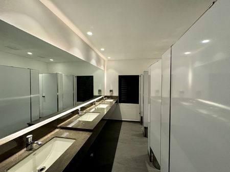 * Baños de hombres y mujeres en la plaza