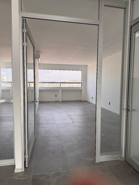 Se entrega el obra gris, tiene instalaciones para aire acondicionado + 1 lugar de estacionamiento propio + lobby con control de acceso + iluminación en plafón con luminarias led. + cada piso cuenta con 2 baños uno para mujeres y uno para hombres. + 2 cuartos para servicio de limpieza + escaleras de servicio y emergencia en la parte trasera del piso, cuarto de instalaciones eléctricas, hidráulicas y sanitarias, así como equipos condensadores para aires acondicionados. + 3 elevadores, 2 de pasajeros y uno de carga+ estacionamiento para visitas con valet parking + escaleras eléctricas + acceso a estacionamiento controlado con tarjetas + área de comedor para oficinas en jardín.