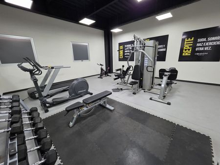 Gimnasio y área de cafetería