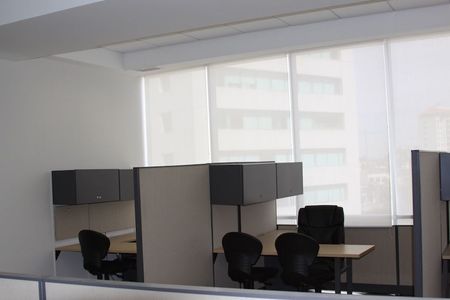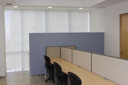 Cuenta con 2 privados, 3 semi privados, 12 unidades de trabajo individuales, sala de juntas para 20 personas divisible en 2 (de 10 personas cada una), con paneles aislantes acústicos, cocineta y área de papelería e impresión.