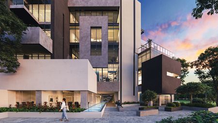 Conformado por 2 torres de 5 plantas, en la 1era etapa construiremos una torre de oficinas y en la 2da etapa una torre de departamentos.